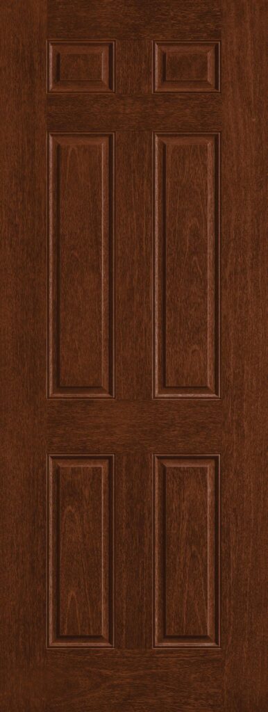 The 8′ 6 Panel – Fiber-Classic Mahogany Collection door complements the rich wood tones in home interiors, extending the classic look to the outside with beauty and elegance. From curb appeal to convenience, our Fiber-Classic collections feature wood grains to suit any style. Choose from a wide variety of door sizes and glass designs, or the perfect fiberglass door to fit a variety of home styles.