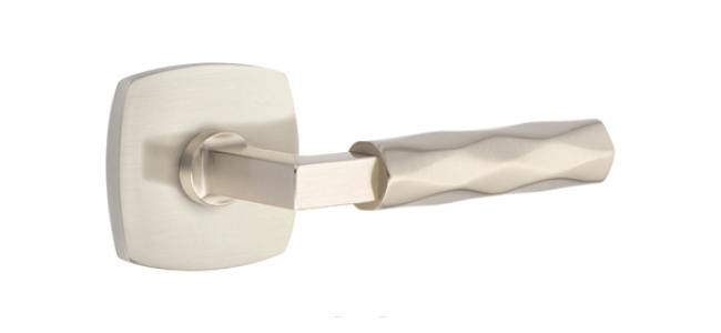 The L-Square Stem with Tribeca Handle and Urban Modern Rosette in Satin Nickel brings sculpted design and modern refinement together in one statement piece. Its distinct Tribeca handle features elegant geometric contours, perfectly balanced by the minimalist L-Square stem and smooth Urban Modern rosette. Finished in brushed satin nickel, this lever set enhances any space with subtle sophistication and architectural charm.